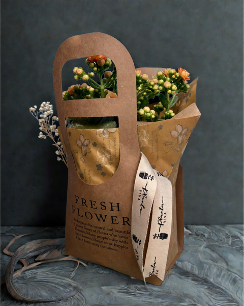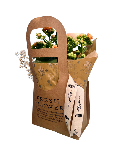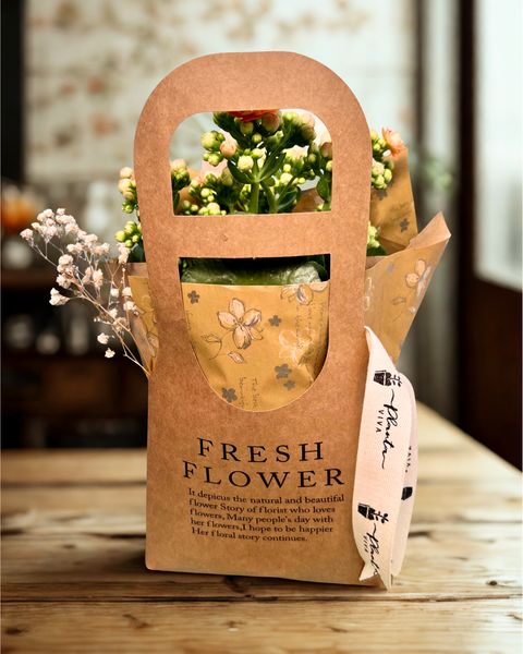 Un detalle simple y lleno de vida: kalanchoe en maceta dentro de una bolsa kraft de tamaño mediano, ideal para regalar naturaleza con un toque cálido y sustentable.
