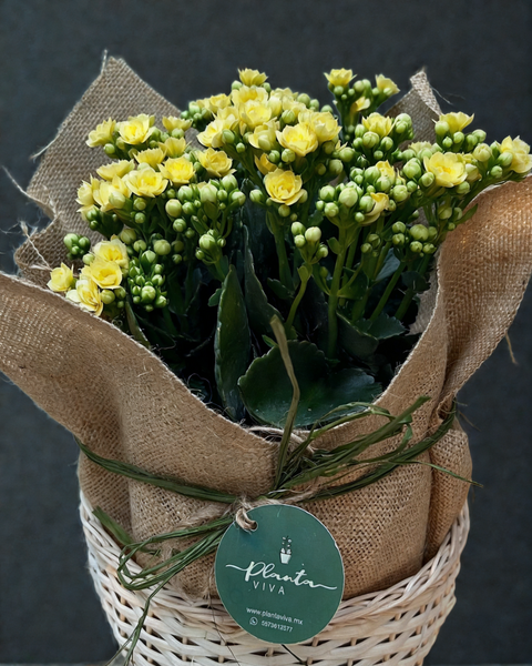 Kalanchoes en cesta con yute natural