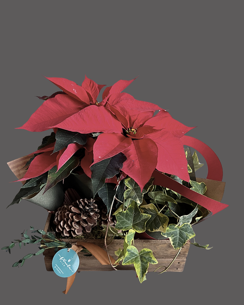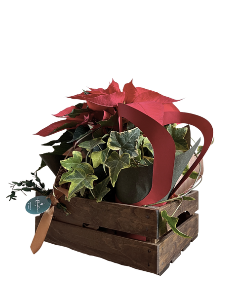 Huacal Navideño con Nochebuenas y hiedra pinta